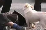 Catelul isi protejeaza stapanul cazut pe strada si nu vrea sa il paraseasca!